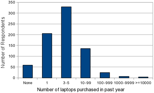 How many laptops have you been responsible for purchasing over the past year? Please include machines that you purchased as well as those purchased by your employer or others based on your recommendation.